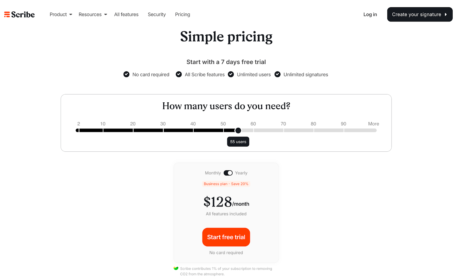 An interactive slider opens the page. Adjust the number and pricing updates across all tiers instantly, so you're matching plans to real usage instead of guessing and hoping you got it right.