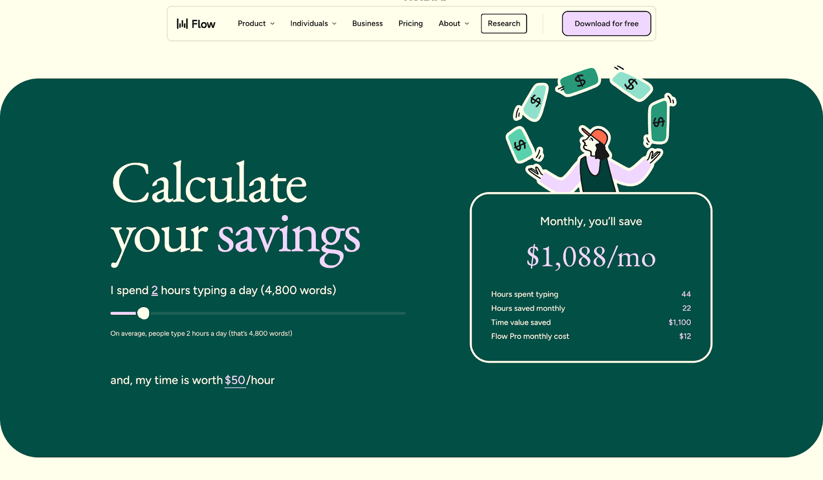 How much is your time worth? Wispr's pricing page answers that question literally.