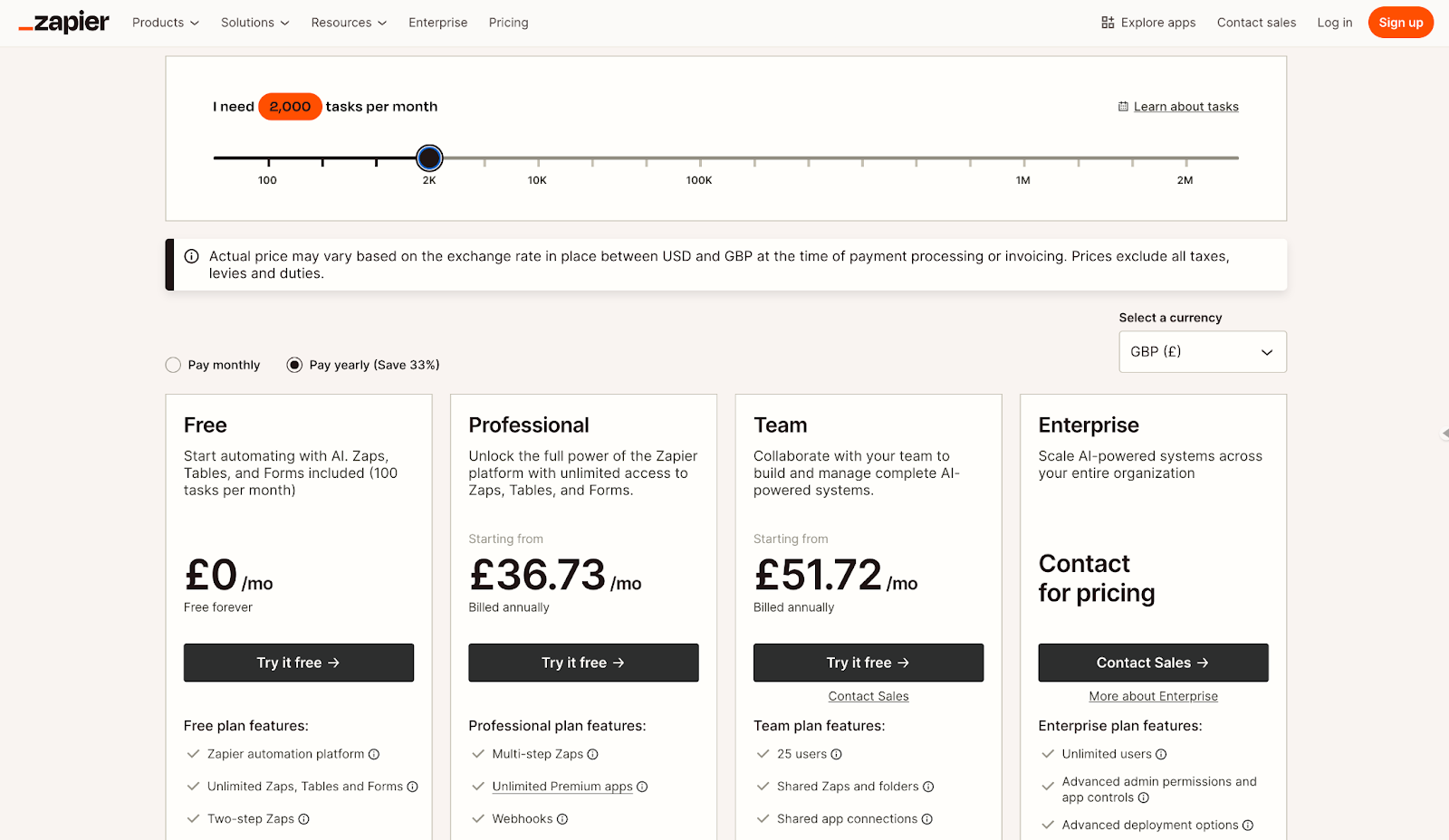 Most buyers have no idea how many tasks per month they actually need. Zapier's pricing page helps you figure that out before picking a plan.