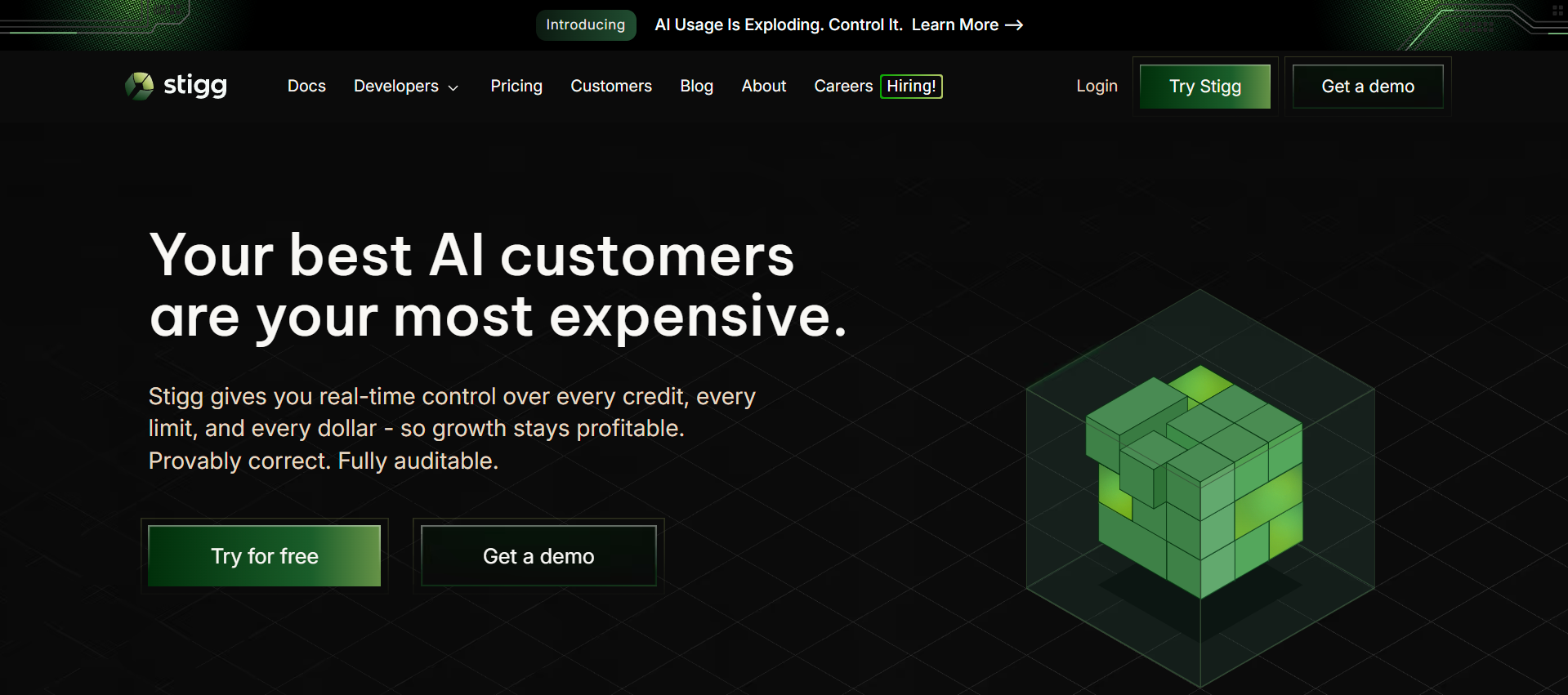 - AI usage governance: Stigg enforces hard limits and usage caps in real time, stopping power users from burning through credits before your team can react.